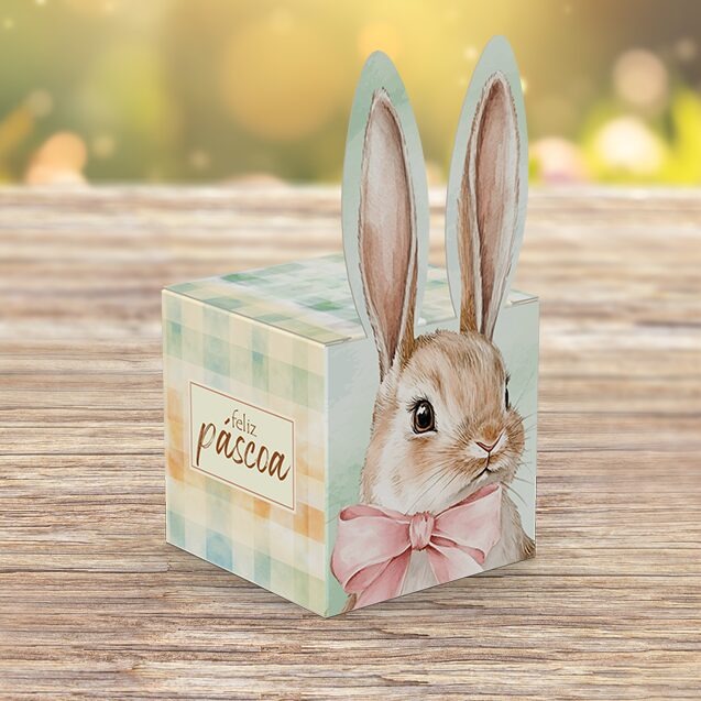 A Caixa Orelha para 1 Doce da linha Páscoa Encantos é delicada e encantadora, perfeita para pequenos mimos e acompanhar presentes especiais. Com design temático de coelhinho, transforma simples doces em mimos cheios de charme.