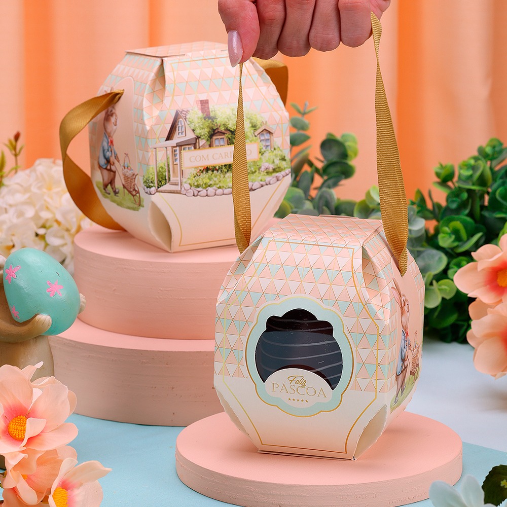 Esta caixa foi desenvolvida para acomodar ovos de Páscoa com elegância e praticidade.