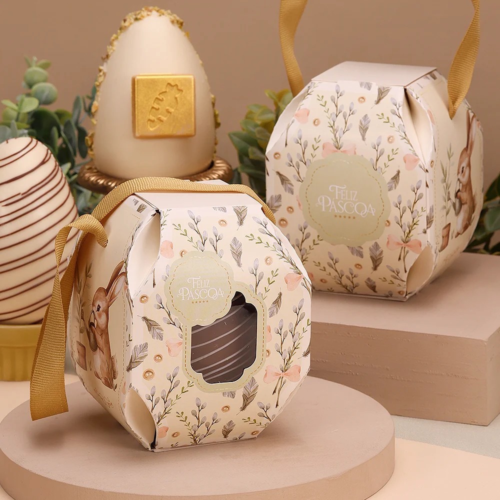 Esta caixa foi desenvolvida para acomodar ovos de Páscoa com elegância e praticidade.
