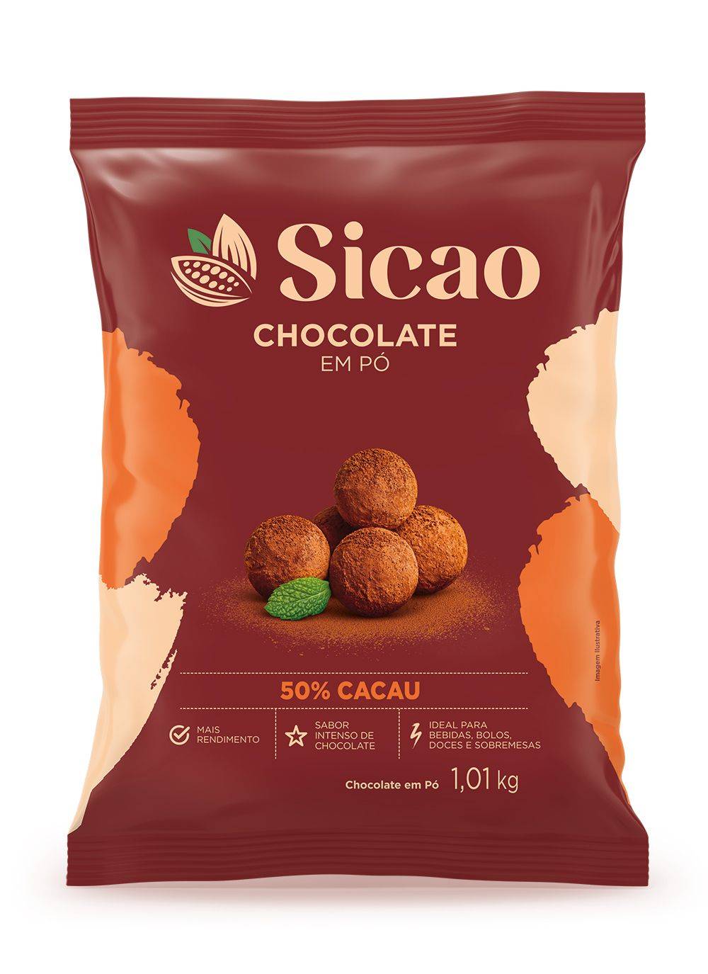 O Chocolate em Pó Sicao 50% tem sabor marcante e cor equilibrada.