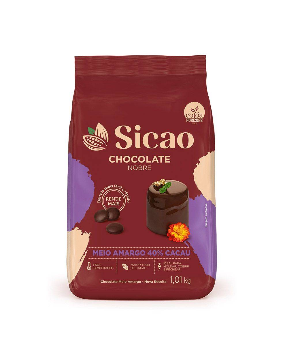O Chocolate Meio Amargo da Sicao é uma opção deliciosa para elaborar suas receitas e encomendas, pois traz o mais nobre chocolate. É um produto que necessita de temperagem para seu manuseio. Produto ideal para receitas como brigadeiros, ovos de páscoa, coberturas, recheios de bolo, trufas, bombons, doces finos e outras sobremesas. O equilíbrio perfeito entre o sabor acentuado do chocolate meio amargo e o sabor mais aveludado do chocolate ao leite, esse é o verdadeiro Chocolate Blend da Sicao. Melhor fluidez, brilho e rendimento.