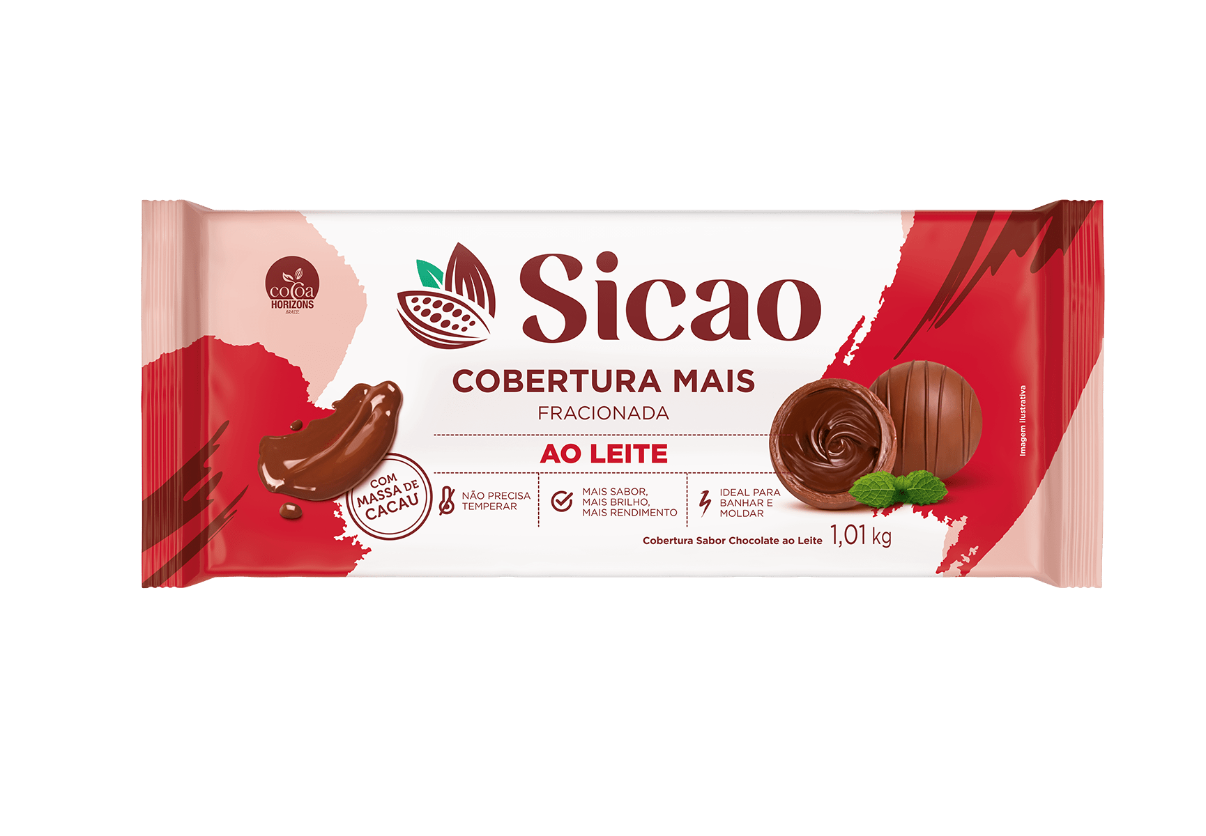 Mais sabor, mais rendimento. A Cobertura Sicao Mais traz o verdadeiro sabor do chocolate, contém liquor de cacau em sua formulação, e a presença de leite a torna mais cremosa. Tem excelente fluidez, brilho marcante e o melhor rendimento do mercado.