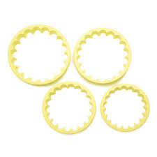 Conjunto de Cortadores de Babados da Blue Star são ideias para trabalhos na Confeitaria com pasta americana, pasta de açúcar e biscuit, para decoração de bolos, doces, tortas e muito mais.