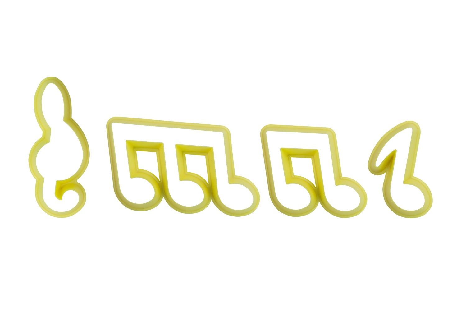 Deixe a música dar mais ritmo às suas decorações! Com o kit de cortadores em formato de Notas Musicais da BlueStar você com certeza fará peças incríveis. Uma embalagem contém quatro peças: uma clave de sol, tercina, semicolcheia e colcheia. Faça apliques para velas e topos de bolo, chaveiros, itens de decoração, lembrancinhas e muito mais!