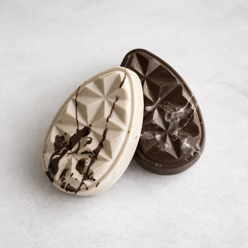Forma especial com silicone (3 partes), ideal para produção de chocolates com muito mais praticidade e precisão. Possui uma “marquinha” indicando a quantidade necessária de chocolate, levando para geladeira uma única vez. Ela proporciona uma casca uniforme e um acabamento perfeito sempre com o mesmo peso.
