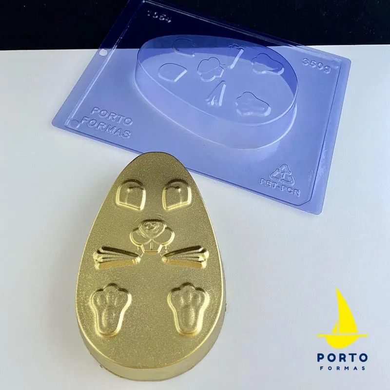Uma proposta fofa e fora do comum! Esse ovo achatado traz detalhes do coelhinho na parte superior, garantindo um resultado final encantador e cheio de personalidade para surpreender na Páscoa.
