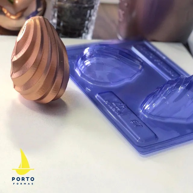 Forma especial com silicone (3 partes), ideal para produção de chocolates com muito mais praticidade e precisão. Possui uma “marquinha” indicando a quantidade necessária de chocolate, levando para geladeira uma única vez. Ela proporciona uma casca uniforme e um acabamento perfeito sempre com o mesmo peso.
