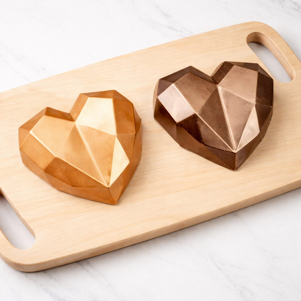 Forma especial com silicone (3 partes), ideal para produção de chocolates com muito mais praticidade e precisão. Possui uma “marquinha” indicando a quantidade necessária de chocolate, levando para geladeira uma única vez. Ela proporciona uma casca uniforme e um acabamento perfeito sempre com o mesmo peso.