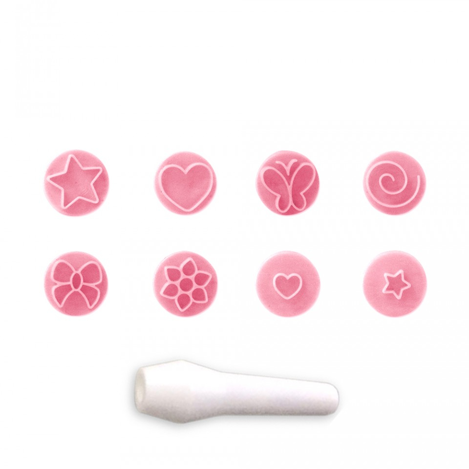 Os Kits carimbos voltaram e foram repaginados, de modo que fiquem com valores bem acessíveis para todas e todos; porque queremos que suas encomendas sejam sempre um sucesso! O Kit Essenciais vem com desenhos muito fofinhos que podem ser usados em diversas ocasiões. Ele conta com 8 carimbos e um cabo. Com cabo para encaixar Tamanho da maracação: 8mm