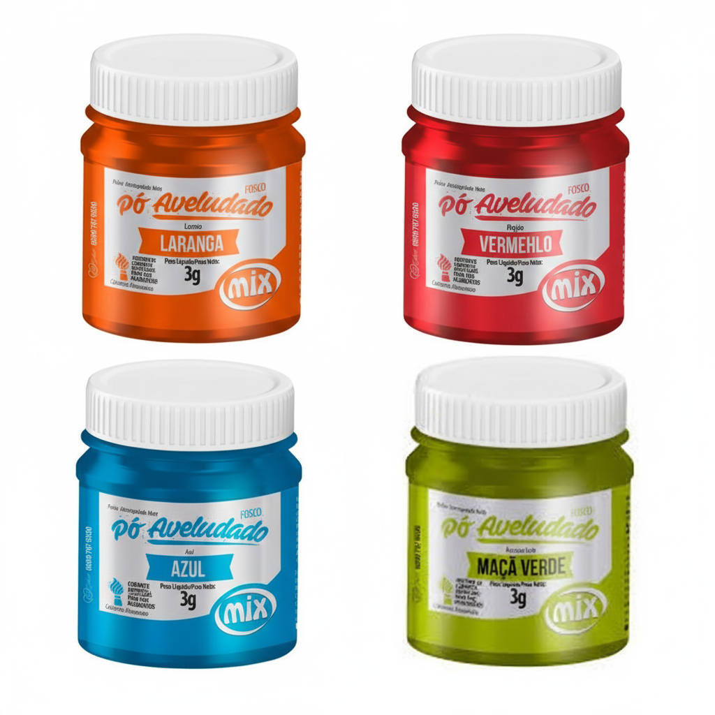 "Corante em Pó Aveludado Fosco é ideal para revestimento e detalhes decorativos. Pode ser utilizado em flores de açúcar, decoração de bolo, docinhos finos, trufas, macarrons, cupcakes, bombom e decorações em geral. Pode ser diluído em álcool alimentício, o que facilita sua aplicação. Basta uma pequena quantidade para pigmentar sua produção. Aplique com auxílio de um pincel e distribua sobre a produção a ser decorada.